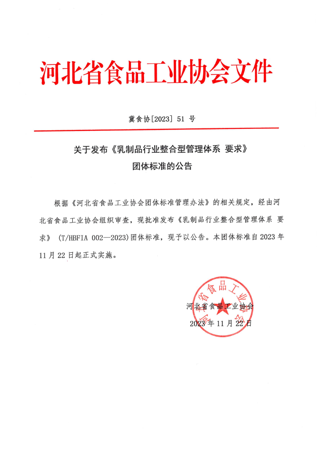 以上為河北省食品工業協會關于發布《乳制品行業整合型管理體系 要求》團體標準的公告(冀食協[2023]51號)的檢測服務介紹,如有其他疑問可聯系在線工程師!
