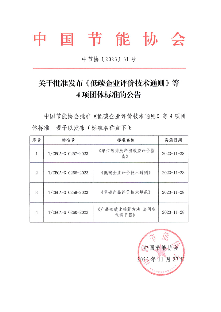 關(guān)于批準(zhǔn)發(fā)布《低碳企業(yè)評(píng)價(jià)技術(shù)通則》等4項(xiàng)團(tuán)體標(biāo)準(zhǔn)的公告.PDF