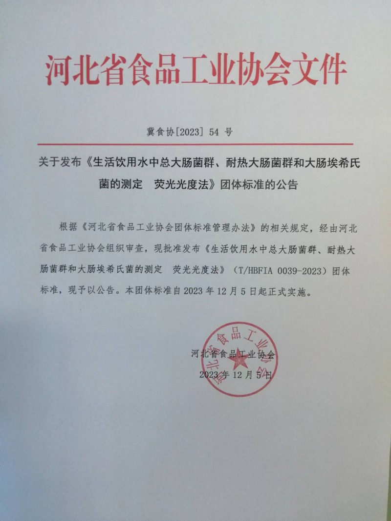 以上為河北省食品工業(yè)協(xié)會關(guān)于發(fā)布《生活飲用水中總大腸菌群、耐熱大腸菌群和大腸埃希氏菌的測定 熒光光度法》團體標(biāo)準(zhǔn)的公告(冀食協(xié)[2023]54號)的檢測服務(wù)介紹,如有其他疑問可聯(lián)系在線工程師!