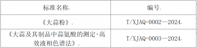 根據《新疆質量協會團體標準管理辦法》的相關規定,團體標準《大蒜粉》、《大蒜及其制品中蒜氨酸的測定 高效液相色譜法》經立項審核、標準起草、征求意見、專家組審查等程序,現予以批準發布。自2024年2月1日起實施,名稱及標準編號如下: