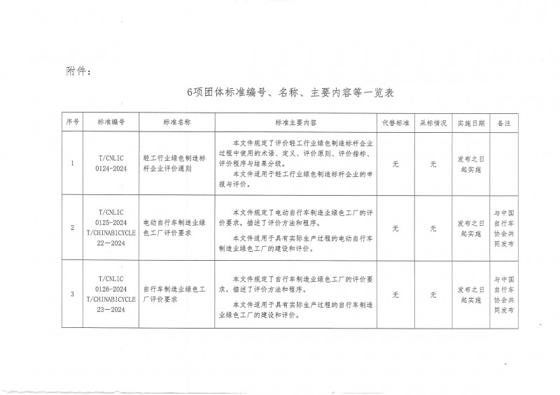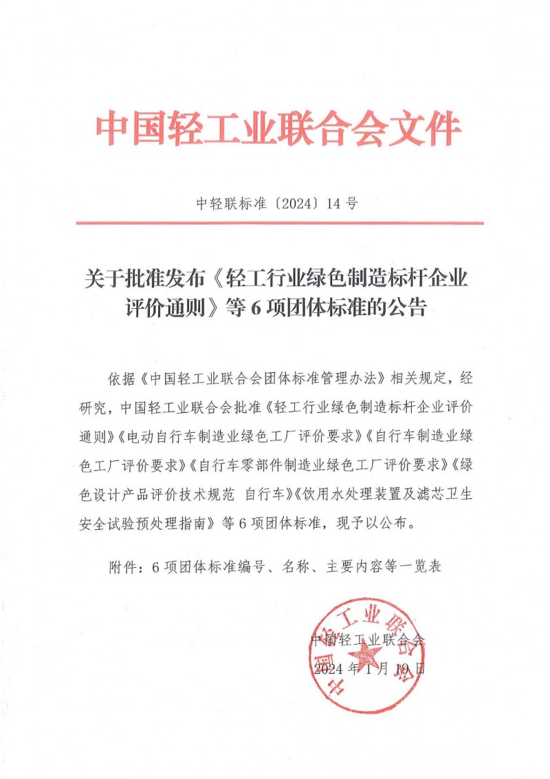 以上為中國輕工業(yè)聯(lián)合會關(guān)于批準發(fā)布《輕工行業(yè)綠色制造標桿企業(yè)評價通則》等6項團體標準的公告(中輕聯(lián)標準[2024]14號)的檢測服務介紹,如有其他疑問可聯(lián)系在線工程師!