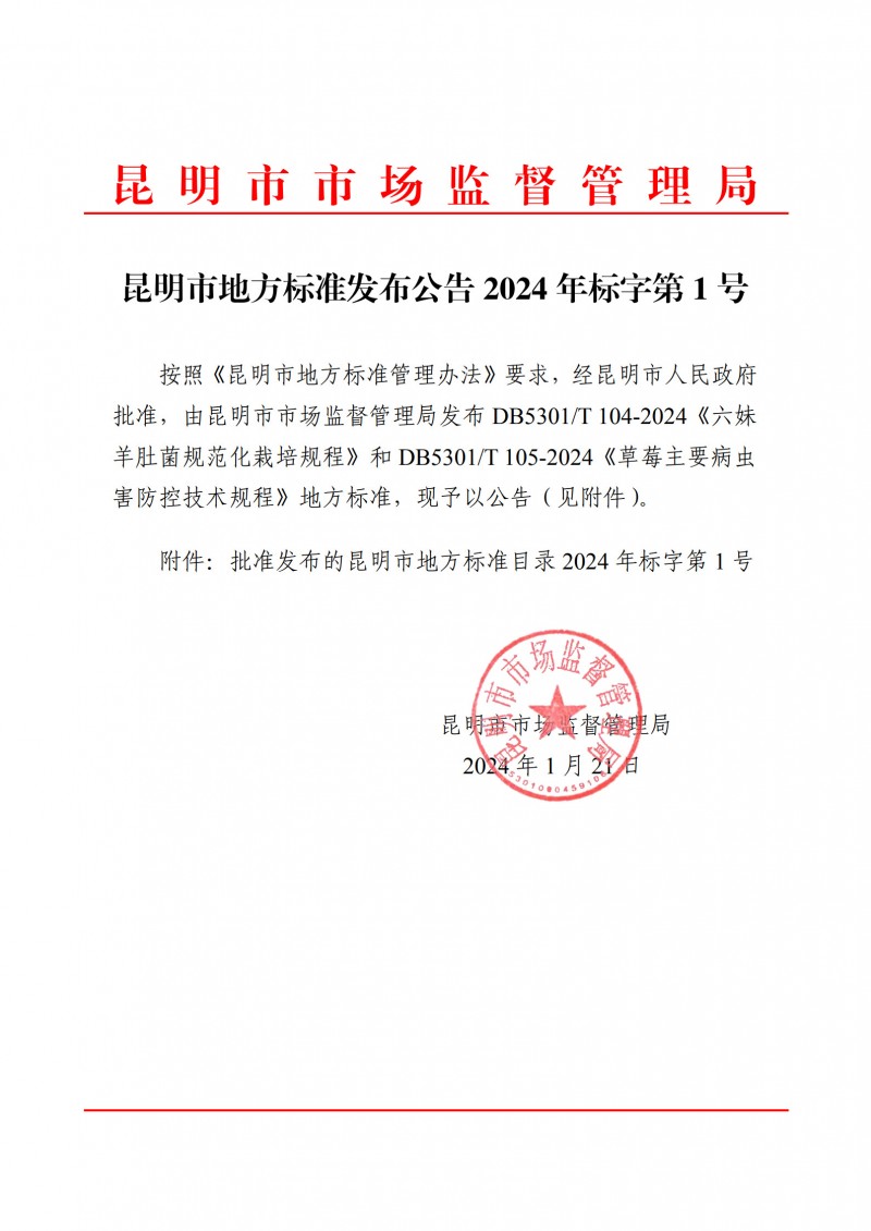 | DB5301/T 105-2024 | 《草莓主要病蟲害防控技術規程》 | 2024年3月15日 | 2024年4月15日 |