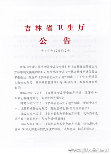 (標準文本可于吉林省食品安全標準網http://www.jlfsstd.net下載)