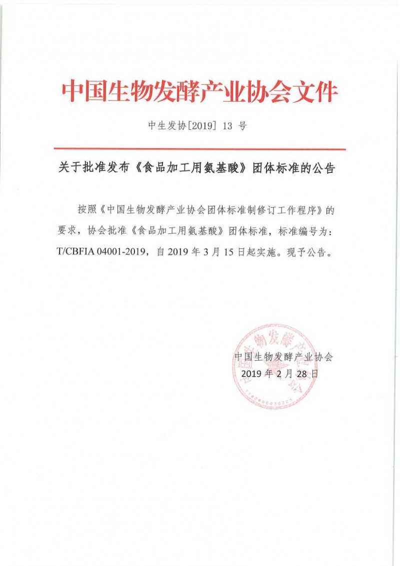 以上為中國生物發酵產業協會關于批準發布《食品加工用氨基酸》團體標準的公告(中生發協[2019]13號)的檢測服務介紹,如有其他疑問可聯系在線工程師!