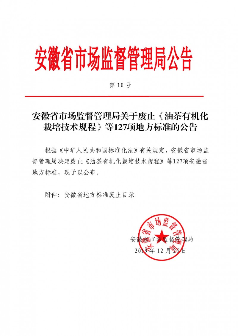 以上為安徽省市場監督管理局關于廢止《油茶有機化栽培技術規程》等127項地方標準的公告(第10號)的檢測服務介紹,如有其他疑問可聯系在線工程師!