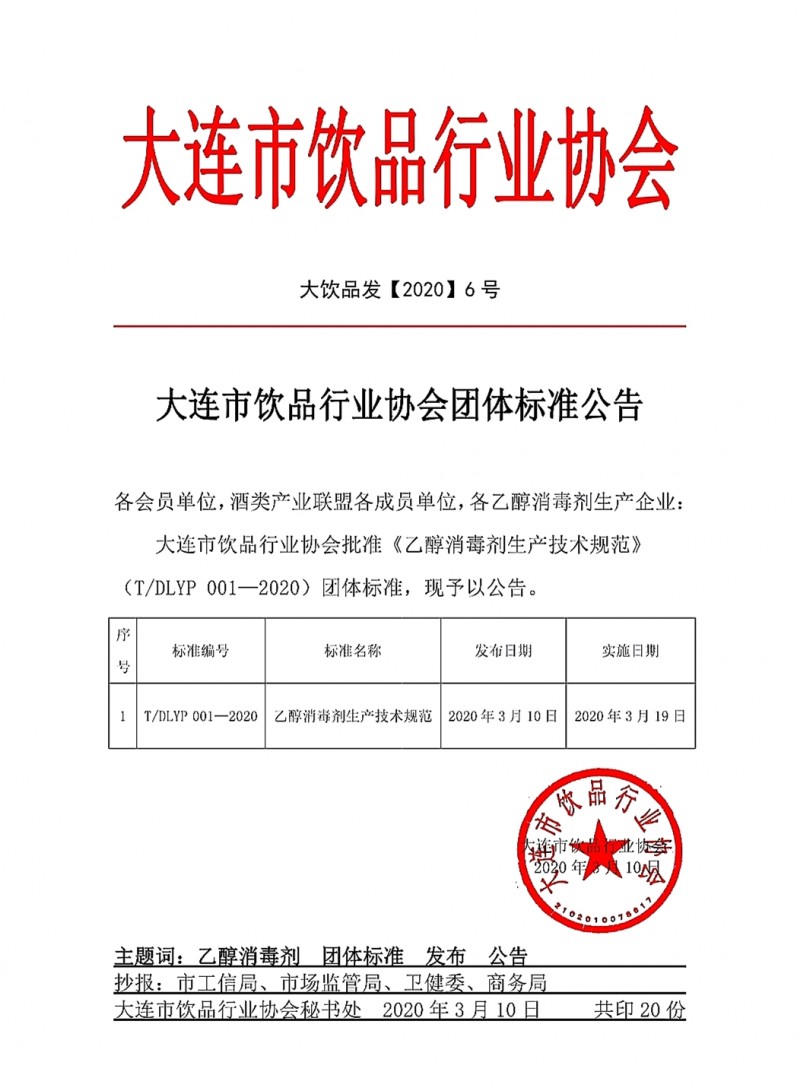 本文關(guān)鍵詞:大連市飲品行業(yè)協(xié)會發(fā)布《乙醇消毒劑生產(chǎn)技術(shù)規(guī)范》團體標準的公告(大飲品發(fā)[2020] 6號),標準公告 本文鏈接:http://m.eriko-tarot.com/jcxm/bzgg/2025-02-10/15442.html