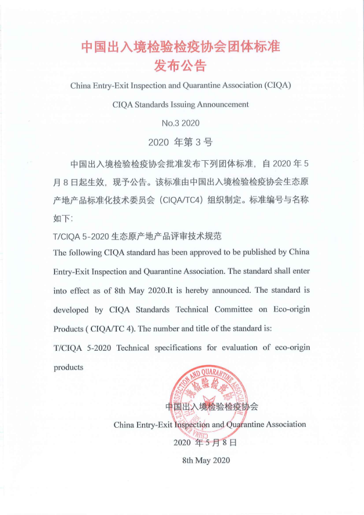 T/CIQA 5-2020《生態(tài)原產(chǎn)地產(chǎn)品評(píng)審技術(shù)規(guī)范》