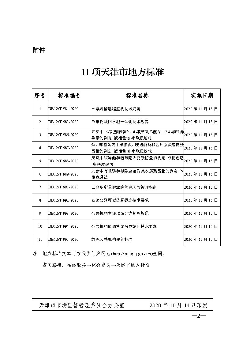 附件: 11 項天津市地方標準