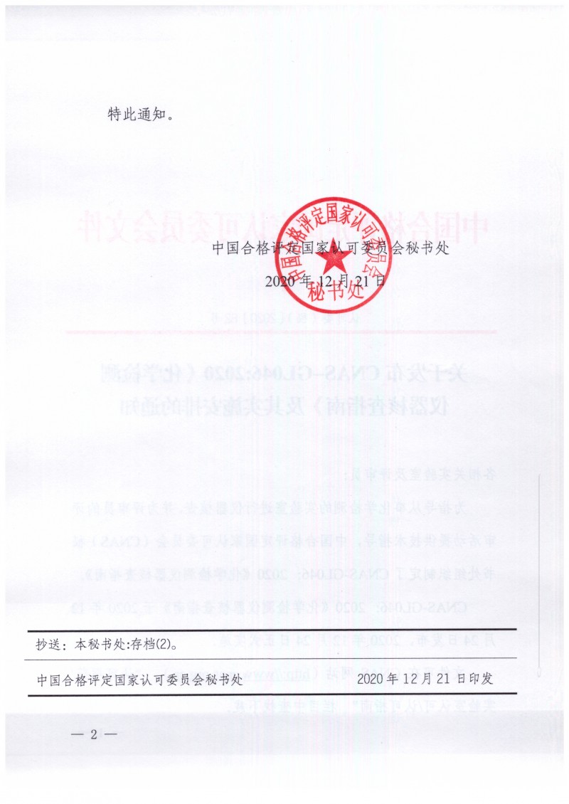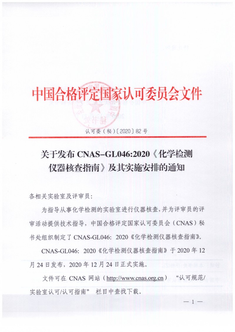 以上為中國合格評定國家認可委員會關于CNAS-GL046:2020《化學檢測儀器核查指南》發布實施通知(認可委(秘)〔2020〕82號)的檢測服務介紹,如有其他疑問可聯系在線工程師!