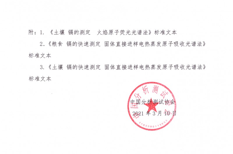 以上為中國分析測試協(xié)會關于《土壤 鎘的測定 火焰原子熒光光譜法》等三項CAIA標準發(fā)布的檢測服務介紹,如有其他疑問可聯(lián)系在線工程師!