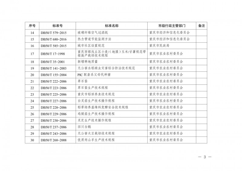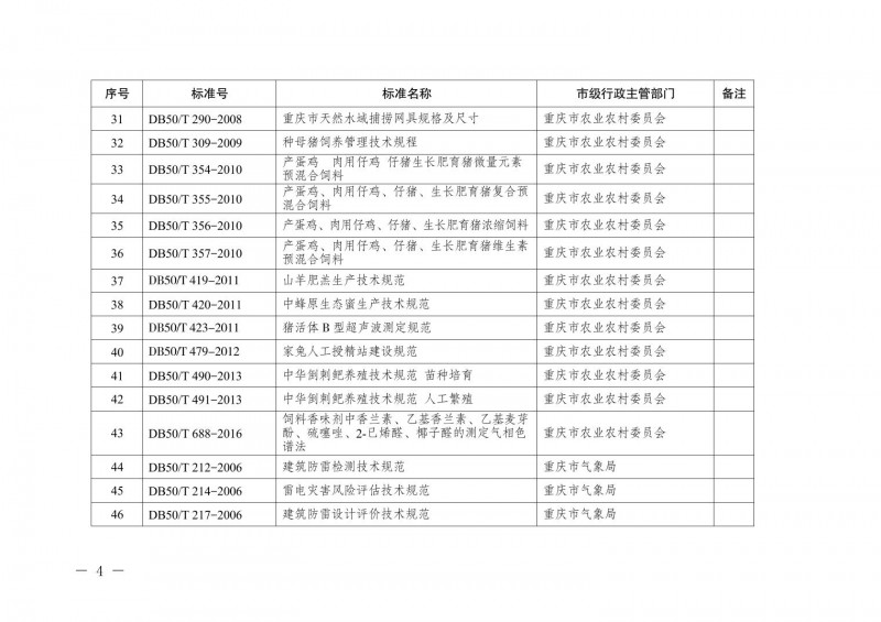 | 18 | DB50/T 355-2010 | 產蛋雞、肉用仔雞、仔豬、生長肥育豬復合預混合飼料 |