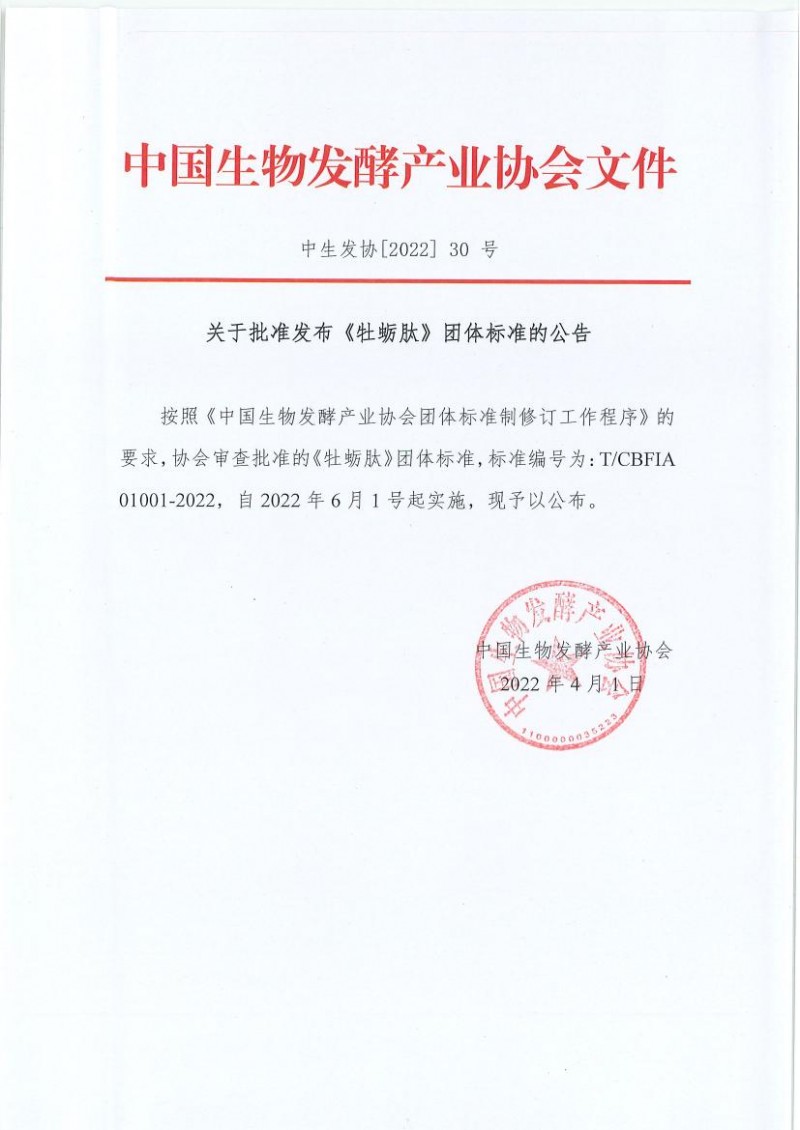 以上為中國生物發酵產業協會關于批準發布《牡蠣肽》團體標準的公告的檢測服務介紹,如有其他疑問可聯系在線工程師!