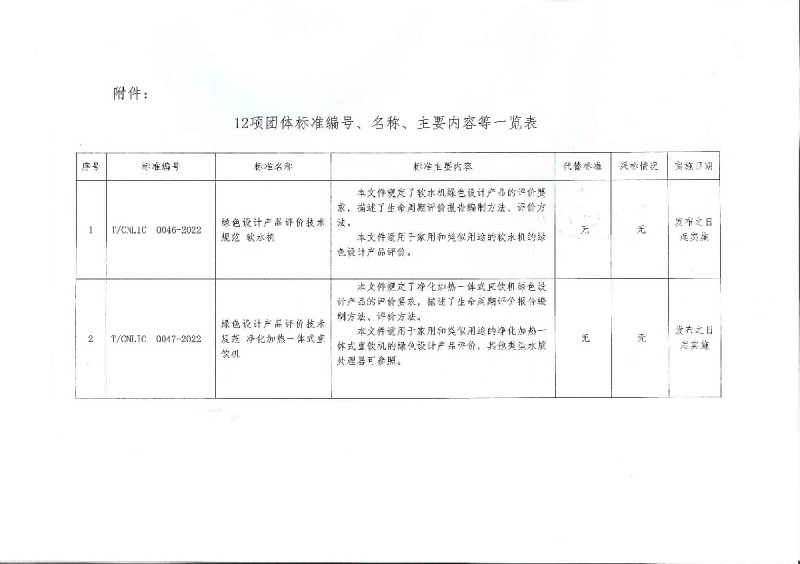 T/CNLIC 0046-2022 綠色設計產品評價技術規范 軟水機 T/CNLIC 0047-2022 綠色設計產品評價技術規范 凈化加熱一體式直飲機 T/CNLIC 0049-2022 東北傳統六醬 T/CNLIC 0050-2022 腐竹 T/CNLIC 0052-2022 綠色設計產品評價技術規范 聚丙烯壓延薄膜與片材 T/CNLIC 0056-2022 家用電器行業綠色工廠評價導則