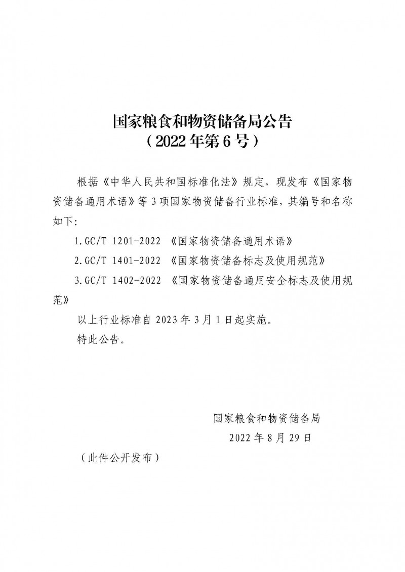 國(guó)家糧食和物資儲(chǔ)備局公告(2022年第6號(hào)).pdf