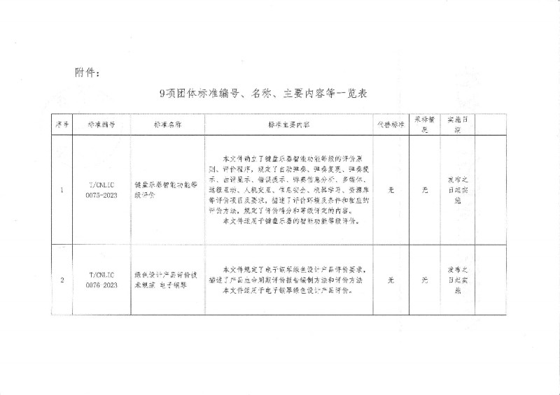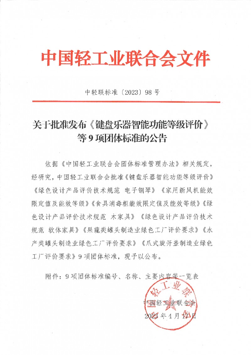 以上為中國輕工業聯合會關于批準發布《鍵盤樂器智能功能等級評價》等9項團體標準的公告(中輕聯標準[2023]98號)的檢測服務介紹,如有其他疑問可聯系在線工程師!