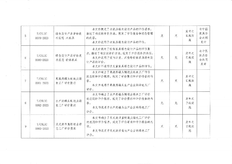T/CNLIC 0078-2023 食具消毒柜能效限值定及能效等級 T/CNLIC 0081-2023 果蔬類罐頭制造業綠色工廠評價要求 T/CNLIC 0082-2023 水產類罐頭制造業綠色工廠評價要求 T/CNLIC 0083-2023 爪式旋開蓋制造業綠色工廠評價要求
