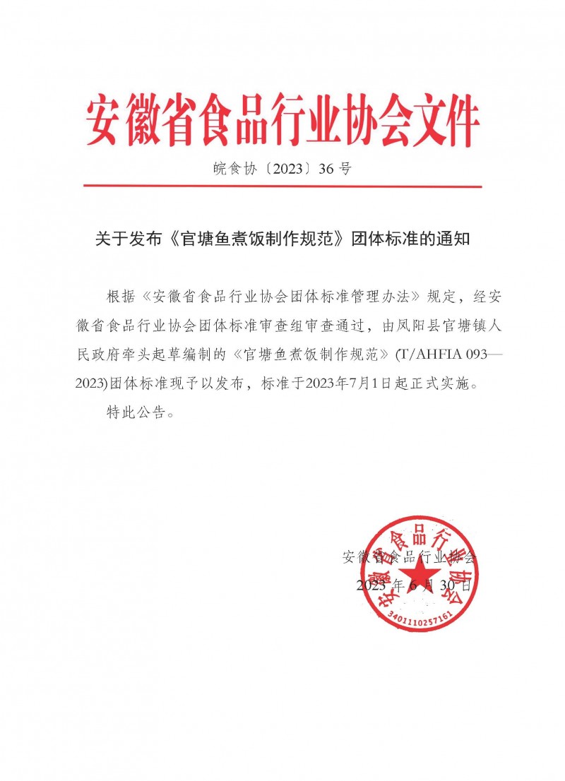 以上為安徽省食品行業協會關于發布《官塘魚煮飯制作規范》團體標準的通知(皖食協[2023]36號)的檢測服務介紹,如有其他疑問可聯系在線工程師!