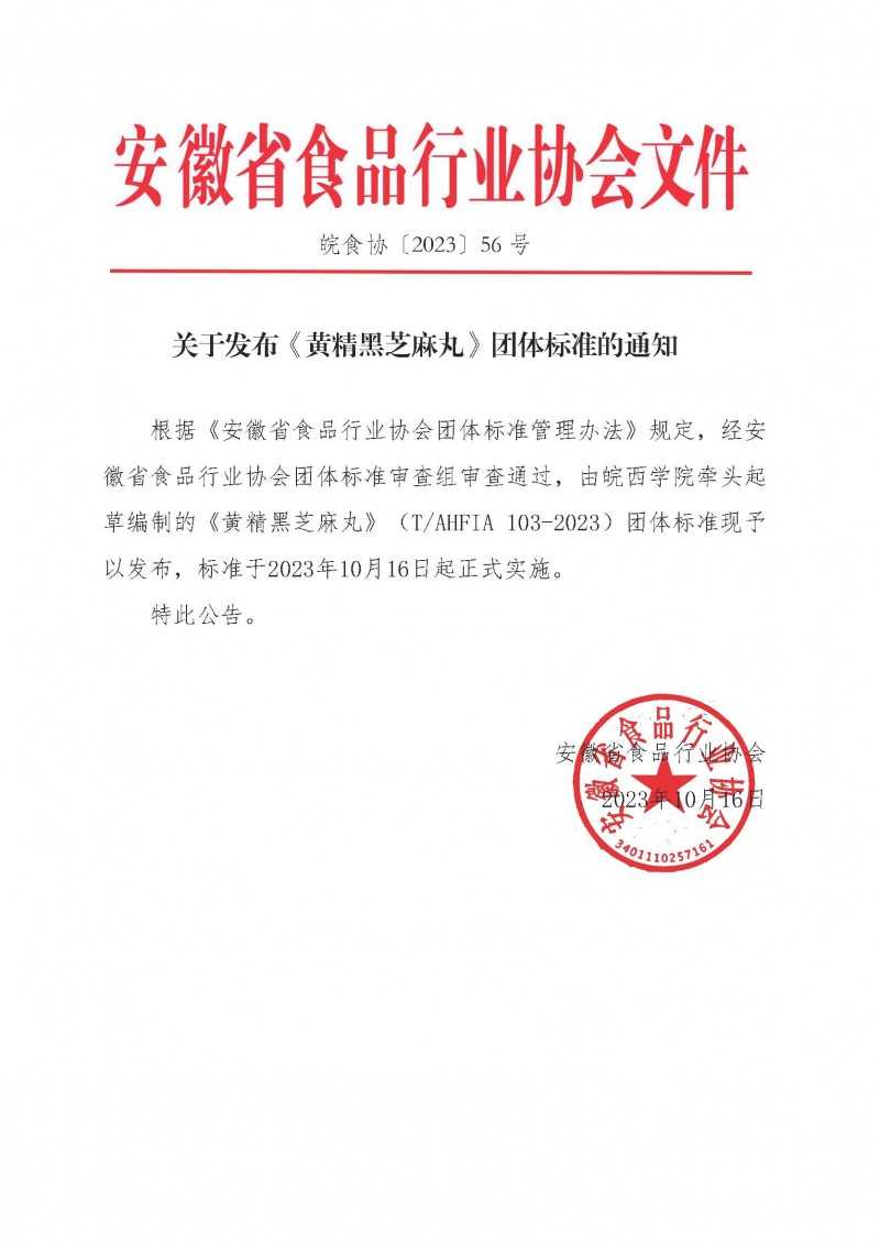 以上為安徽省食品行業協會關于發布《黃精黑芝麻丸》團體標準的通知(皖食協[2023]56號)的檢測服務介紹,如有其他疑問可聯系在線工程師!