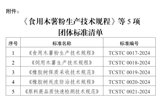 附件:《食用木薯粉生產技術規程》等5項團體標準清單